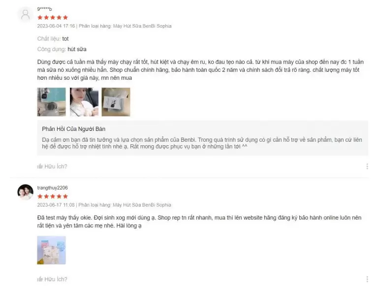 Sau một thời gian xuất hiện rộng rãi trên thị trường, các sản phẩm của BENBI đã nhận được nhiều đánh giá tích cực từ khách hàng và mang lại sự hài lòng cao. Sau đây là một số phản hồi của khách hàng trên các trang Mạng xã hội và Sàn thương mại điện tử.